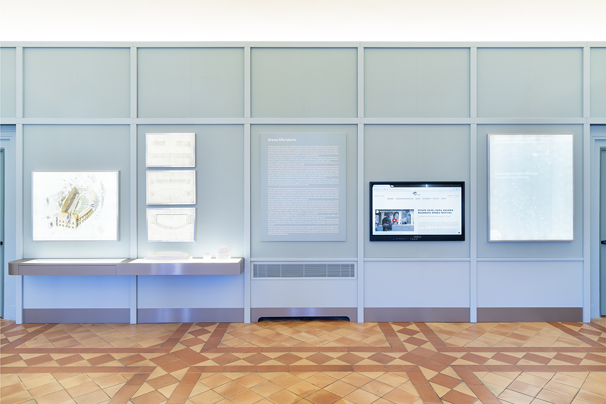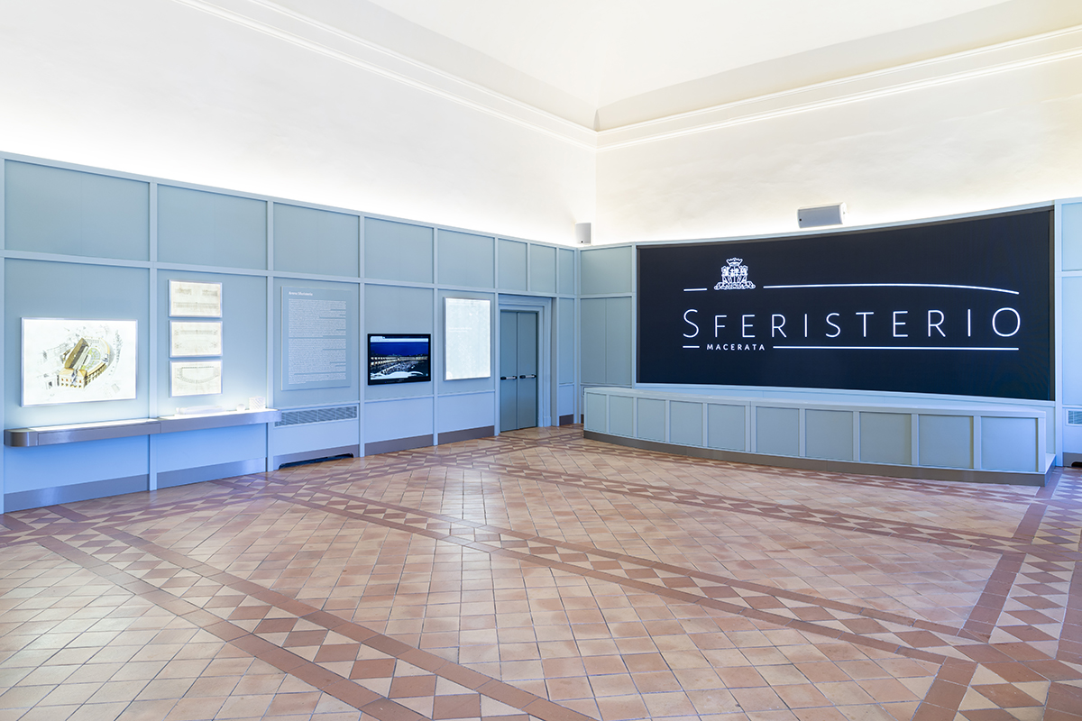 SFERISTERIO Visual design, signage, 3d printed scale model Exhibit design: CH+ Bruno Mariotti | Video: Marco Bragaglia | 3D model: Vincenzo Franchino | 3D printing: Design for Craft Macerata, 2020